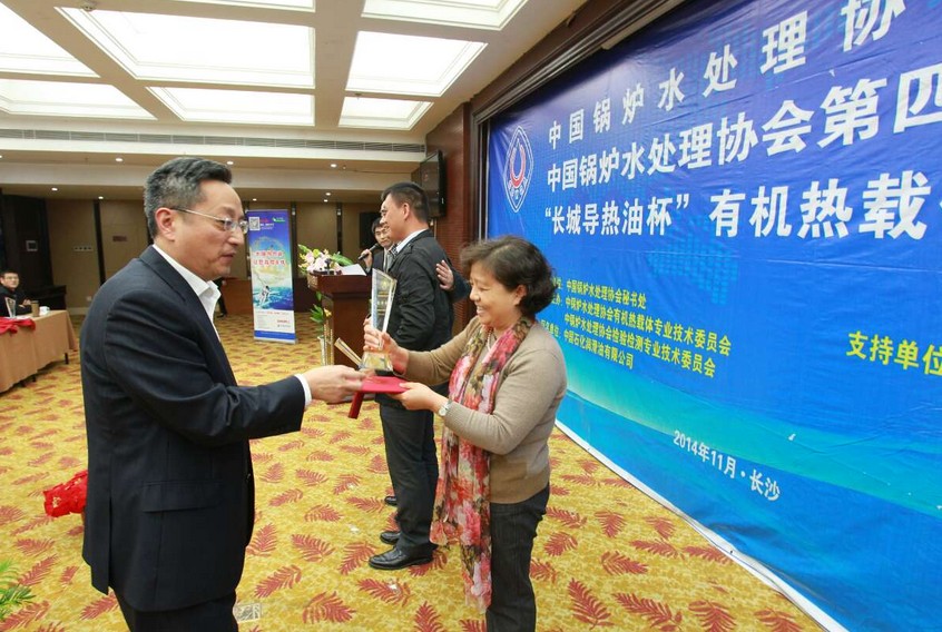 中國鍋爐水處理協(xié)會(huì)檢驗(yàn)檢測(cè)技術(shù)委員會(huì)主任、江蘇省特檢院常州分院院長李秀中,為我公司王慧經(jīng)理頒發(fā)獎(jiǎng)杯與證書。